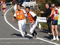 ■山内選手から寺嶋選手へのたすきの受け渡し
