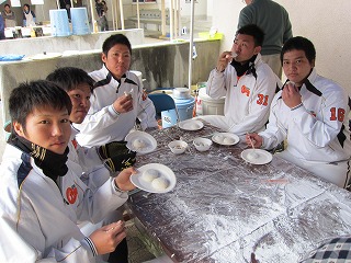 お餅つきをしました。これが結構なキツイ運動で、選手たちも「これはキツイ・・・!」