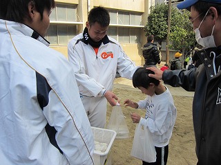 1月22日、松山市立味生小学校で行われたバザーに昨年に引き続き、選手5名がお手伝いに参加してきました。参加したのは、篠原選手、大堂選手、濱田選手、笹平選手、高田選手。
