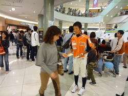 10月28日にエミフルMASAKIで行われた、「えひめ教育の日」推進フェスティバルに中村投手(背番号19)、河添選手(背番号41)、四ツ谷選手(背番号2)、そしてマッピーが参加しました!