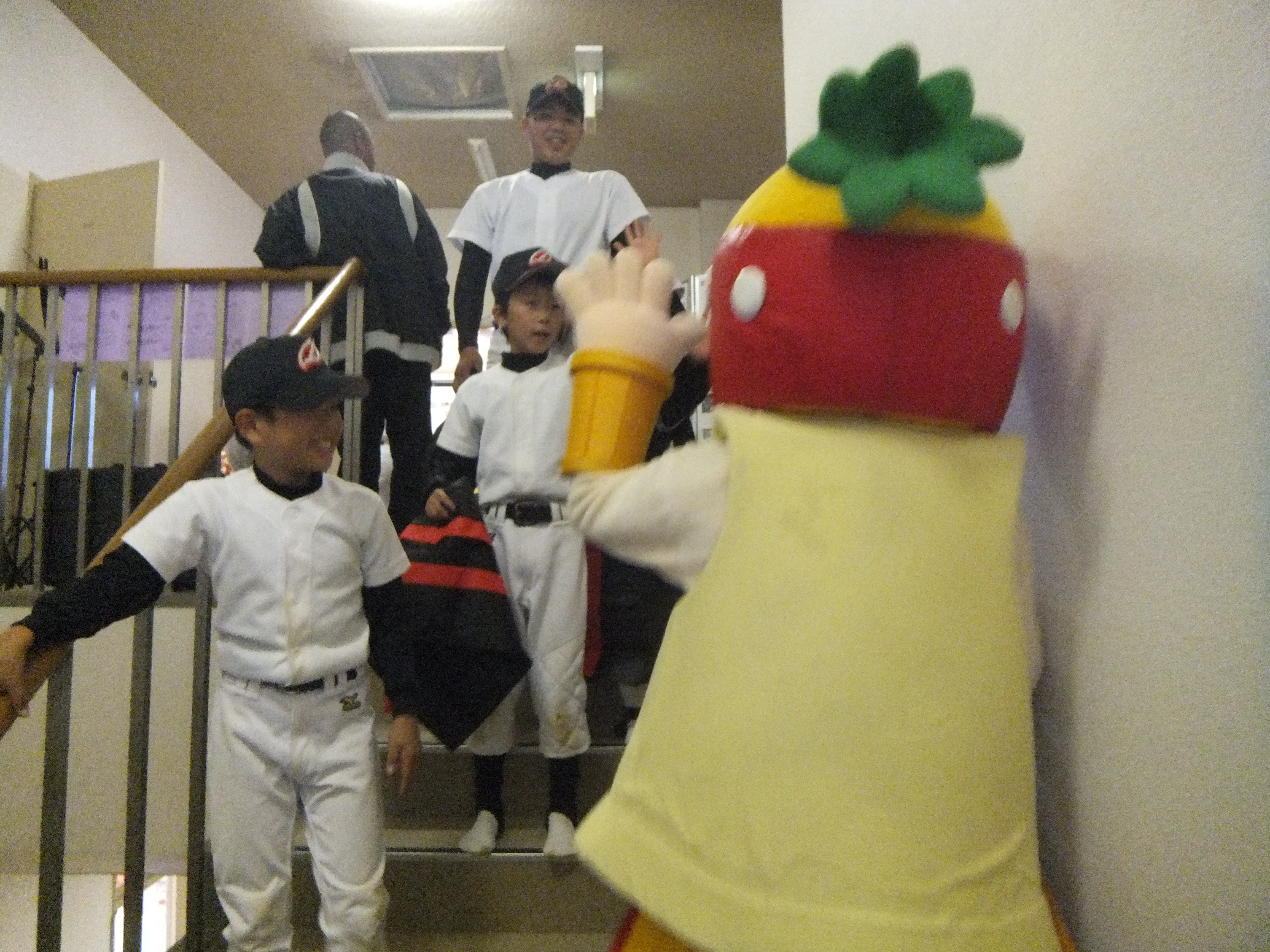 ●野球少年たちの踊りにますくまんが飛び入り参加!