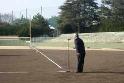 毎年恒例の今治合同合宿が2月11日より始まりました。 初日の11日はセレモニーを行い、愛媛マンダリンパイレーツ今治後援会事務局長 杉野様、今治市の菅市長にもお越しいただき、激励のご挨拶をいただきました。その後、今治後援会より星野監督と高田キャプテンに花束の贈呈をしていただきました。