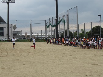 30mダッシュ大会も開催!成績優秀者は当日の試合イベントに出演できるとあって、みんな真剣に全力疾走!!
