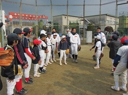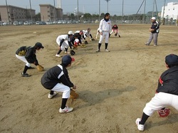各選手から自己紹介の後、さっそく野球教室スタートです。まずはアップから。
