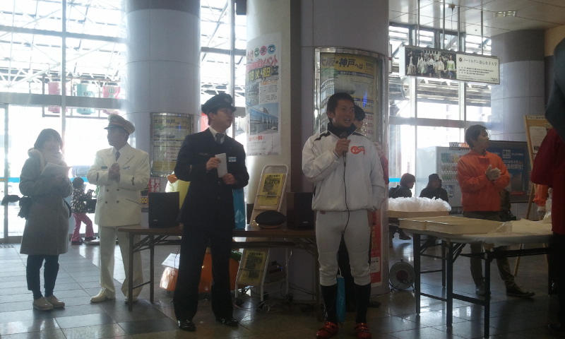 2月11日、JR今治駅で行われた「JR今治駅開業90周年イベント」に、四ツ谷選手(背番号2)、成廣選手(背番号13)、廣瀬選手(背番号61)、後藤選手(背番号52)が参加しました!