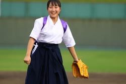 始球式は宇和島高校書道部の おかはらさわ さん。笑顔がすてきでした。ナイスピッチ!