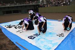 宇和島東高校書道部のみなさんによる書道パフォーマンス。凛々しい姿が目を引きました。できあがった作品もすばらしく感動的でした。