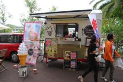 スイーツのキッチンカーやおなじみのルンルンさん。充実のスタジアムグルメ。