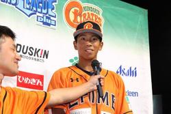 「グッドプレー賞」(ご提供:㈱ひめライスさま、伯方塩業㈱さま)は逆転タイムリーを放った梶栄斗選手(左から2人目)と、同じく四回に追加点となるタイムリーを放った高松真之選手(左から3人目)。