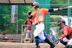 打線は10点ビハインドの二回、8番セカンド松本凌弥選手が第2号のスリーラン。三回には、4番レフト潤米浩介選手が第1号となるスリーランで、一時4点差まで追い上げました。しかし、その後チャンスをつくるも、2つの併殺などもあって得点できず敗戦。前期、対高知ファイティングドッグスは1勝7敗2分の成績に終わってしまいました。