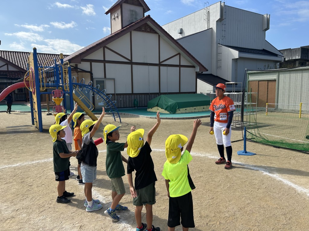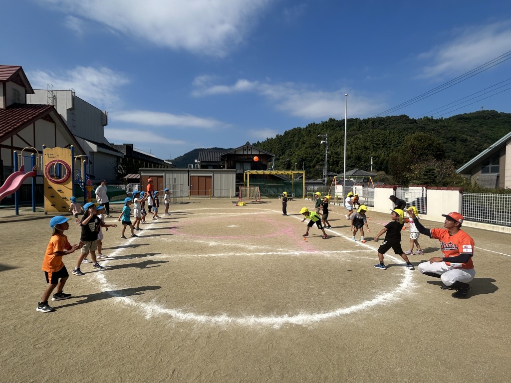 元気いっぱいでかわいい園児たちから、選手もスタッフもたくさんのパワーをもらいました。打ったり投げたりがとても上手で、「お〜!」という歓声があふれていました 。