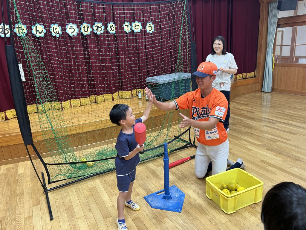 10月17日(金)、渕上竜椰選手、日野柊斗選手が 四国中央市立中曽根保育園を訪問しました。