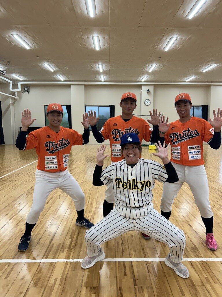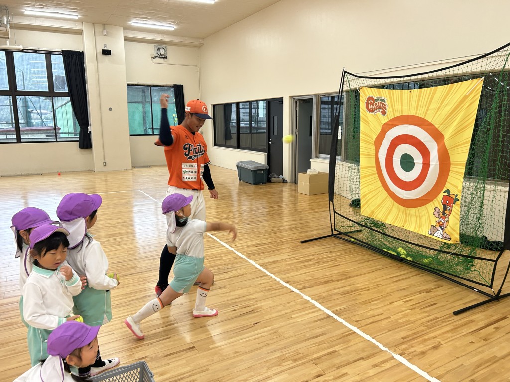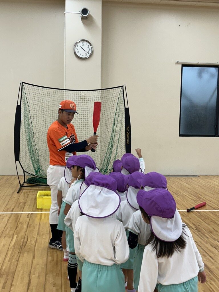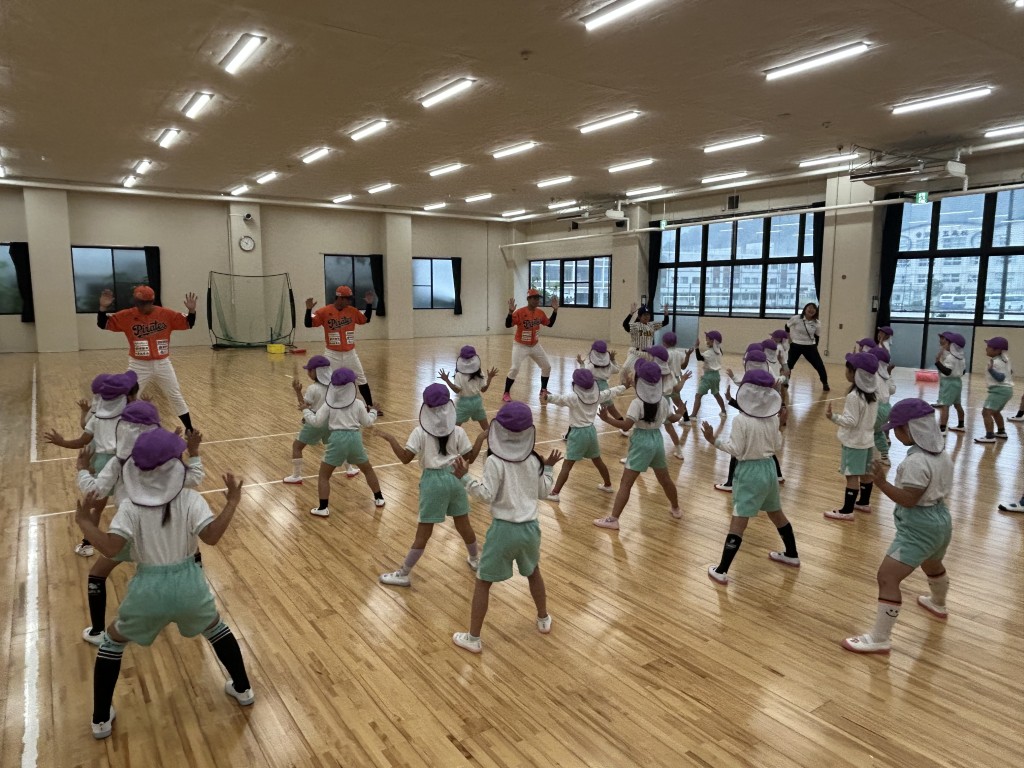 野球体験では、元気いっぱいにスイング&スロー!選手たちも笑顔で交流しました。