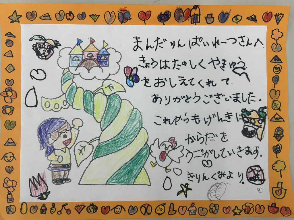 最後には、心のこもったお礼状もいただき、選手たちも感激!