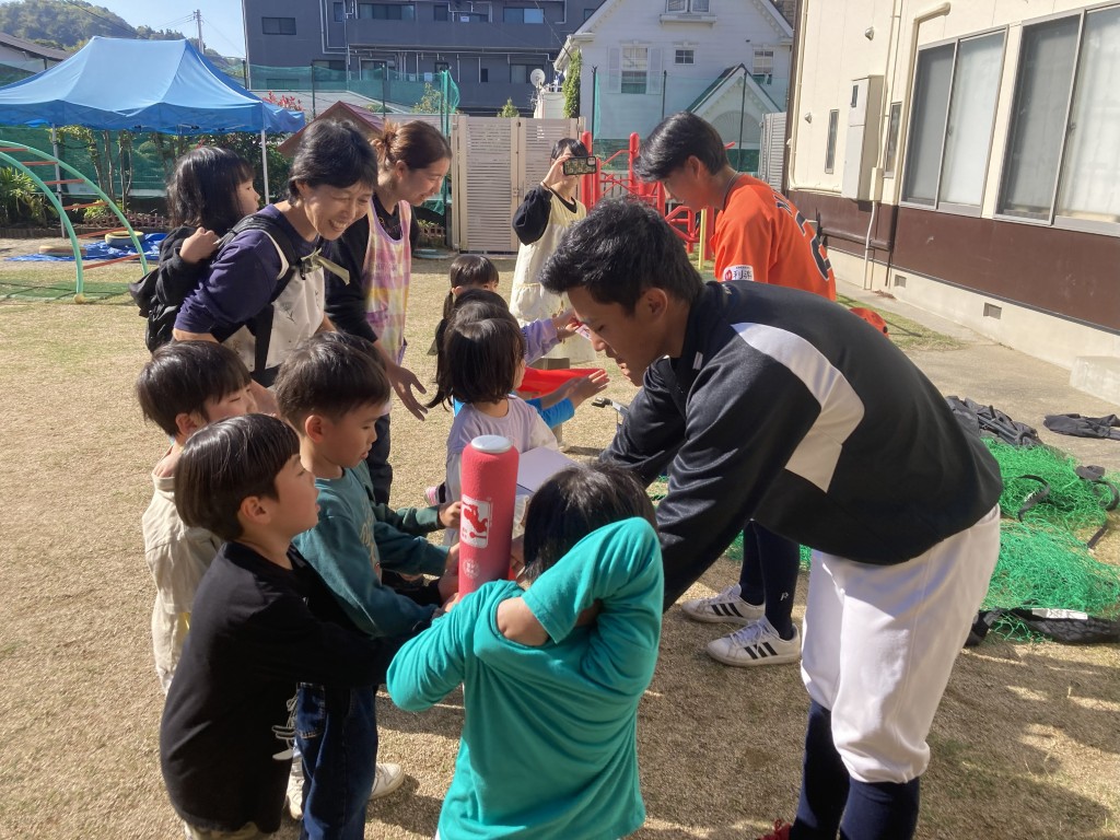 11月14日(金)、長田雄生選手と村野唯斗選手 が鶴城幼稚園(宇和島市)を訪問しました。