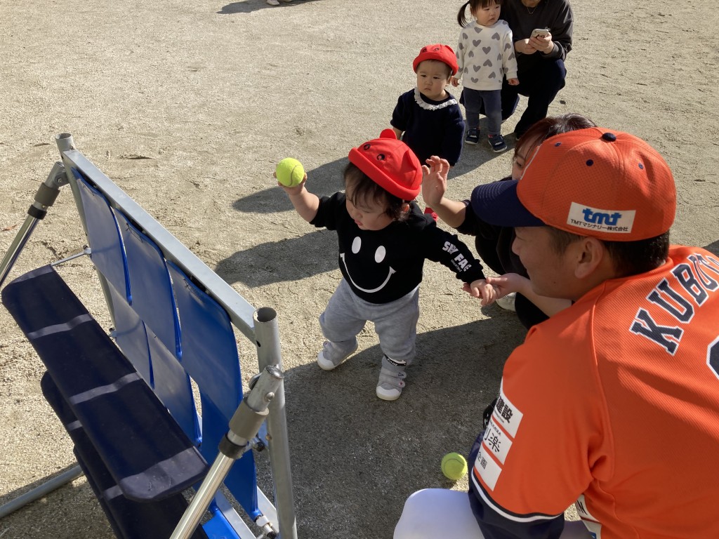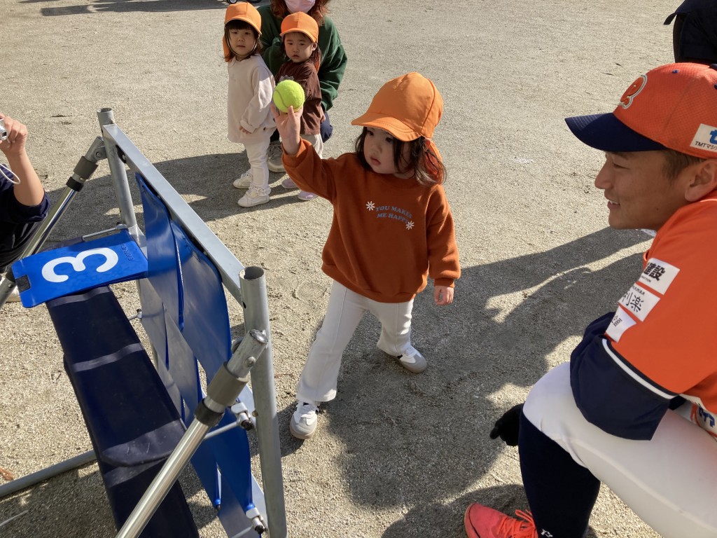ボールをぎゅっと握って一生懸命投げる姿がかわいすぎて…選手も思わずメロメロ。。。