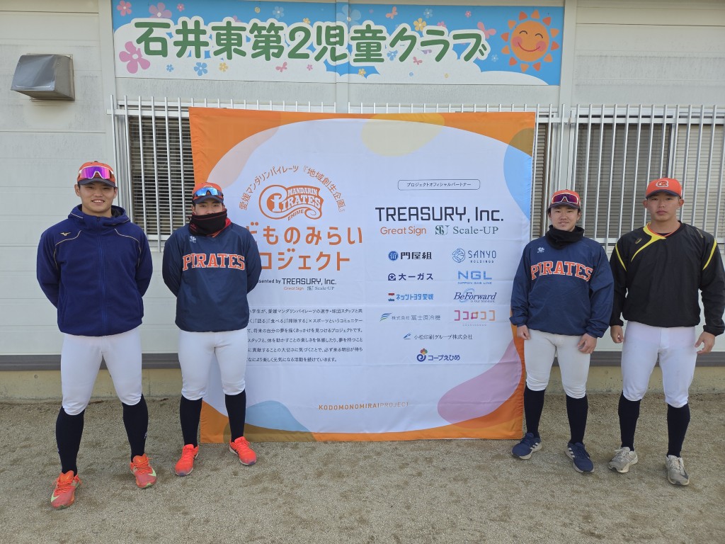 1月8日、「こどものみらいプロジェクト」を石井東小学校児童クラブ(松山市)で開催し、佐山選手、林選手、高橋藍太選手、日野選手が参加しました。