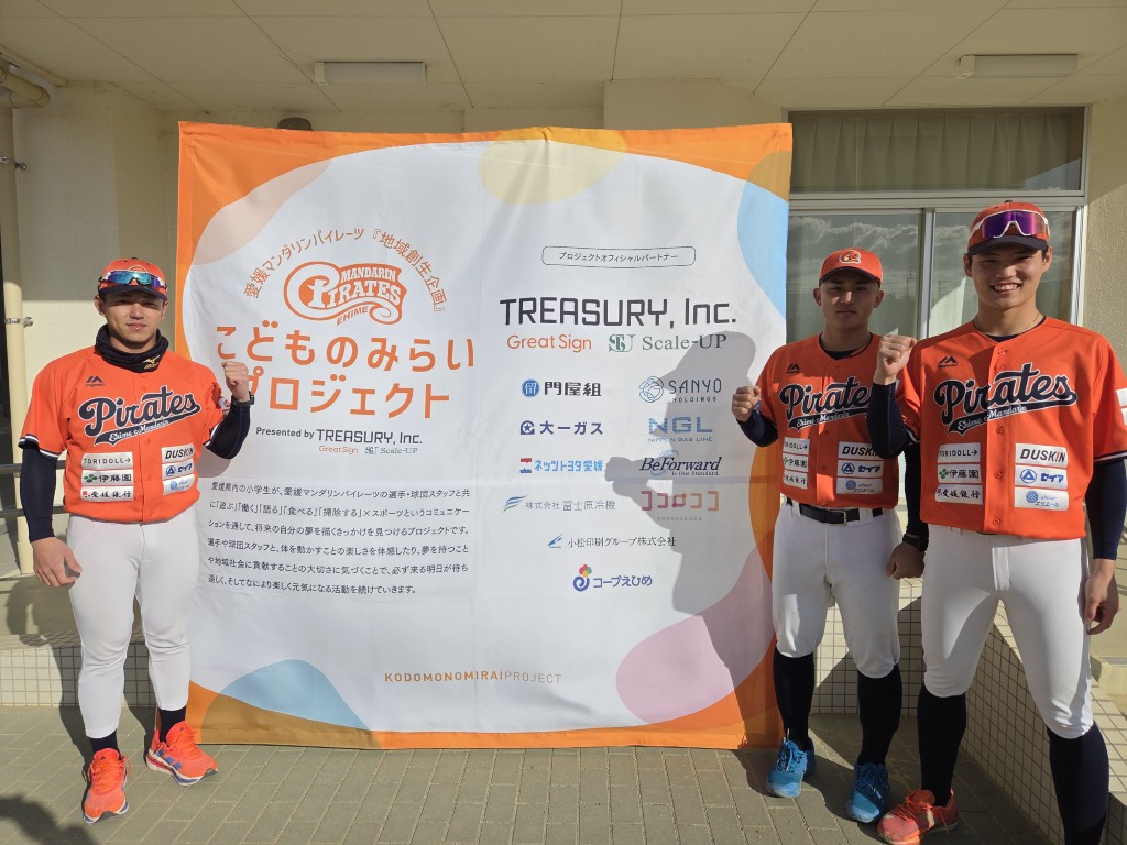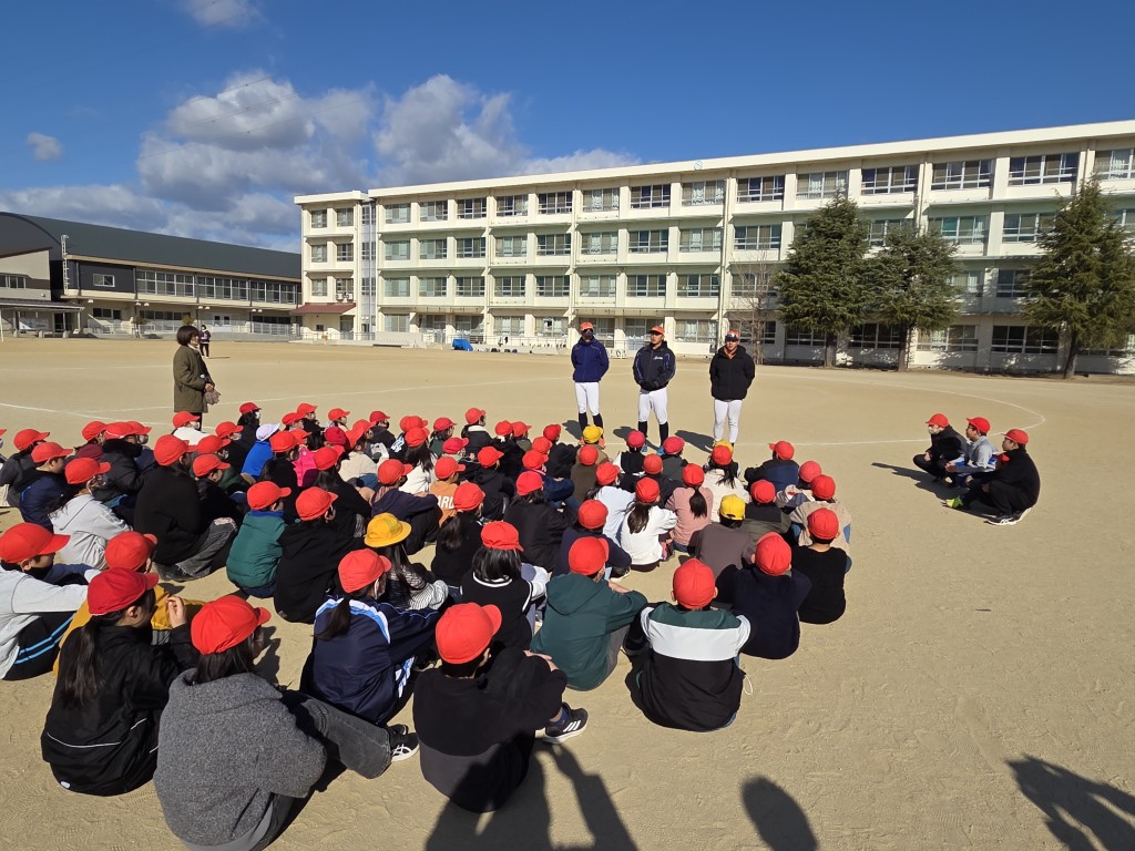 1月23日(金)、「こどものみらいプロジェクト」を松山市立北久米小学校(松山市)で開催!今回は大城雄一郎選手、長田雄生選手、佐山蒼空選手が参加、5年生児童の皆さん(約90名)と交流しました。