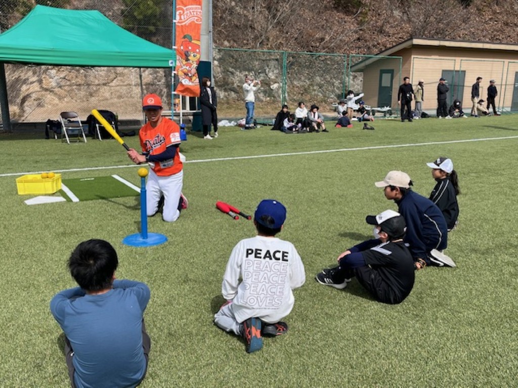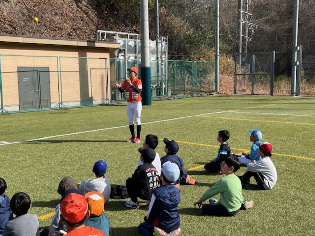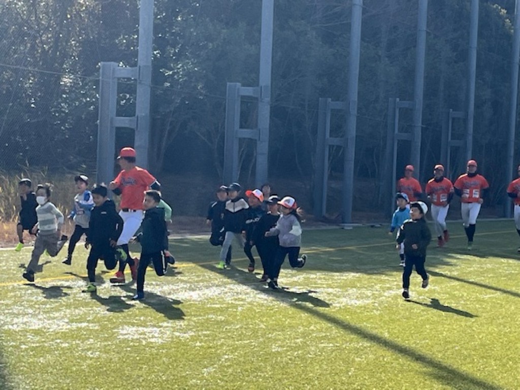 まずは「鬼ごっこ」をして体を温めたあと、野球体験を楽しみました。