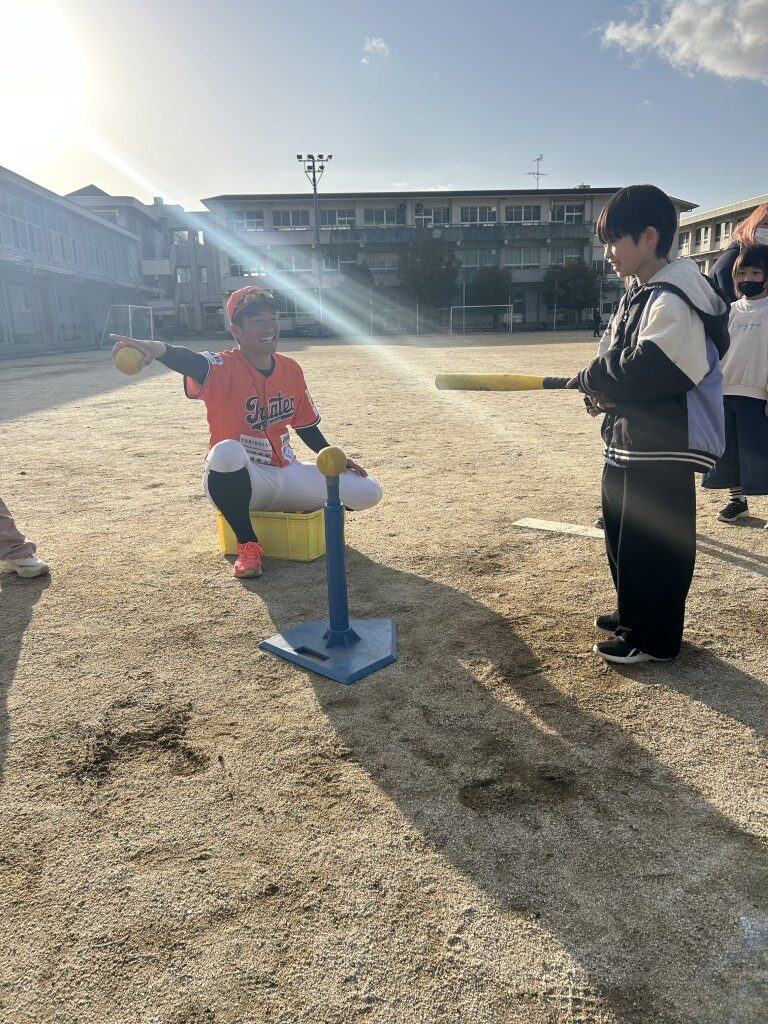 午前・午後の全体練習後、走り・投げ・打ち……そして子どもたちへ笑顔を届けた3選手!