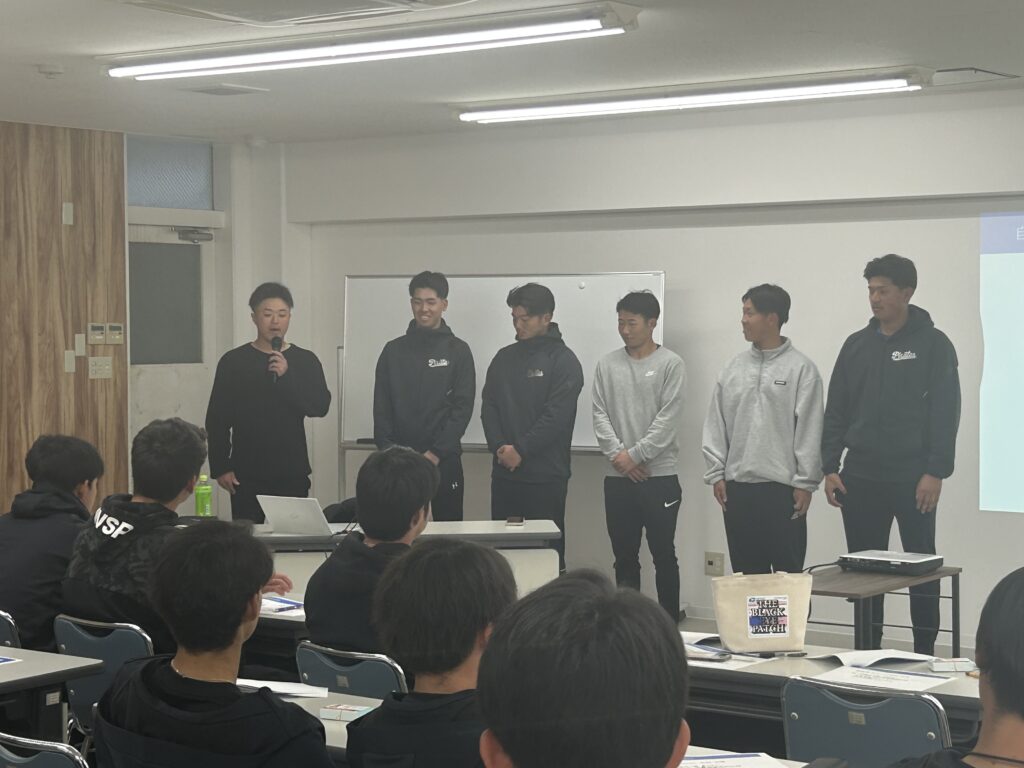 最後は新入団選手による自己PR。緊張の面持ちでしたが、ただプロフィールを発信するだけではなく、どう表現すれば印象に残るか、好感を持ってもらえるかについて講師からアドバイスをいただきました。